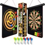 - Double-Sided Magnetic Dartboard – One side is a traditional dart, and the other is a bullseye game. It has 12 darts in 4 colors. More darts and gameplay can increase the fun of the game and allow many people to participate!