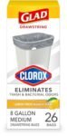 • MEDIUM GARBAGE BAGS: Twenty-six (26) 8-gallon Glad Drawstring Medium Trash Bags With Clorox feature a refreshing Lemon Fresh Bleach Scent