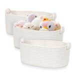 GLCON Small Rope Storage Baskets for Organizing – Off White Cotton Rope Organizer Basket – Empty Gift Basket – Woven Baskets Cute Toy Storage Bin for Nursery, Shelves, Closet – 3 Pack