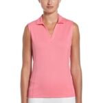 - FASHIONABLE DESIGN: This women’s golf shirt offers functionality and fashion. Designed with a sleeveless silhouette for enhanced comfort and freshness, a ribbed polo collar, a solid-colored design for effortless styling, and innovative seams for improved freedom of motion.