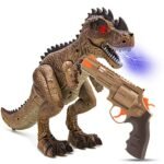 - AWESOME INTERACTIVE T REX – Watch your little one become immersed in a thrilling dino-action adventure with these big dinosaur toys! Each shot gets a different reaction; light up, roar, steam spray, walk and more. This TRex won’t go down without a fight!