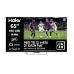 Haier Mini LED 4K UHD H65M90EUX 65” Smart TV, Google TV, Dolby Atmos e Dolby Vision, 144Hz, HDR 10, Google TV, Processore Quad Core, Bluetooth 5.1, DBX TV, HDMI 2.1 x 4 [2024] is available on Amazon at best discounted online price. Original price of this product is € 1199. You can buy this product at discounted rate € 521.88.