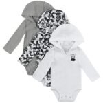 • STURDY CONSTRUCTION – These infant hooded, long sleeve bodysuits include reinforced snaps at the bottom and a neckline that retains its shape.