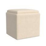 - Elevate your living space with the Homepop Stain-Resistant Cream Woven with Tray Top Storage Ottoman. Its elegant design and cream color effortlessly blend with any decor style
