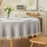 hometrixx Tovaglia Rotonda Ø160cm – Tela Cotone-Lino Impermeabile Anti-Macchia con Frange (Cachi)