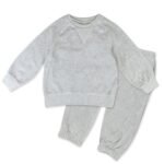 HonestBaby 2-Piece Cozy Velour Sweatshirt and Jogger Sweatpants Set 100% Organic Cotton for Toddler, Baby Boys, Girls, Light Gray Heather, 4T