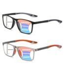 Hubeye Occhiali da lettura sportivo da uomo e donna Lettori ultraleggero TR90 Confortevole Flessibile Occhiali anti luce blu (Nero+Arancione, 2.00)