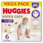 Huggies Extra Care, Pannolini Taglia 6 (15-25 Kg), Mutandina traspirante, Pacco Mega, 60 Pz