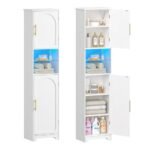 Hzuaneri Mobile Bagno con Luci LED, 2 Ante, mobiletto bagno salvaspazio, mobile alto con spazio aperto, ripiani regolabili, soggiorno, bagno, 30 x 40 x 170 cm, Bianco SC28213X