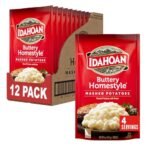 Idahoan Buttery Homestyle Mashed Potatoes, Naturally Gluten-Free, 100% Real Idaho Potatoes, 4 servings per bag, 4 ounce (Pack of 12) is available on Amazon at best discounted online price. Original price of this product is $ 10.44. You can buy this product at discounted rate $ 9.