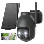 ieGeek 2K Telecamera Wi-Fi Esterno Senza Fili con Pannello Solare, 360° PTZ Videocamera Sorveglianza a Batteria, Rilevazione di Movimento PIR con Allarme,Visione Notturna a Colori, 2 Vie Audio, IP65