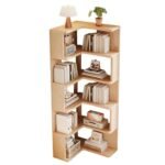JFOZDM 5 livelli Libreria Angolare, Libreria d’angolo, Legno libreria a L, Libreria da Parete, Risparmia Spazio, Scaffale Angolare per soggiorno, camera da letto, ufficio, studio, Colore del Legno