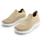 JOMIX Scarpe Slip On Donna Traspiranti in Maglia Elasticizzata Sneakers Casual Senza Lacci per Camminare Tempo Libero Viaggio Lavoro Leggere con Soletta Memoria Morbida Comoda Beige 36