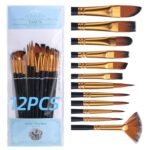 JPNK Professional Artist Paint Brush Set of 12 Painting Brushes Kit for Kids, Adults Fabulous for Canvas, Watercolor & Fabric for Beginners and Professionals and Great for Oil or Acrylic Painting
