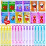 - 【PERFECT CLASSROOM EXCHANGE】Set of 24 mini bubble wands ideal for Valentine’s Day classroom parties, school exchanges, and sharing with classmates. This joyful value pack includes 24 bubble wands and 24 animal-themed greeting cards featuring 6 adorable designs for name signs and gift sending. Ideal valentines day cards for kids school, valentines day gifts for kids classroom, valentines cards for kids classroom