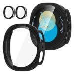 Jvchengxi [2 Pezzi Opaco Custodia per Samsung Galaxy Watch 8 40mm Pellicola Protettiva, Rigida PC Vetro Temperato Cover Anti-Graffio Schermo Protezione Case Galaxy Watch 8 40mm(Nero/Nero)