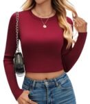 kakola Womens Ribbed Long Sleeve Crop Tops Tight Fitted Crew Neck T-Shirts for Women Trendy Basic Tees 2025 Fall Red L