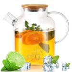 Kasanni Teiera In Vetro 1.8 L Copertura In Legno Con Filtro Resistente Al Freddo e ai Calore, a Prova di Esplosione Teiera Vetro Borosilicato Adatto Per Tè, Tisane Profumate e Bevande Alla Frutta
