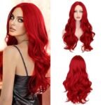 KBIBCK Parrucca rossa da donna, 24 pollici, colore rosso vinaccia, lunga parrucca lunga da donna, parrucca ondulata, parrucca lunga da donna, parrucche a capelli lunghi da donna, colore rosso