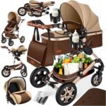 KESSER® Carrozzina 3in1 Loops, Carrozzina Combinata con navicella, Seggiolino sportivo, Seggiolino auto, Borsa Fasciatoio, Parapioggia, Tavolino per Bambini, Marrone/Champagne is available on Amazon at best discounted online price. Original price of this product is € 257.8. You can buy this product at discounted rate € 176.8.