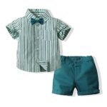 Kimocat Summer Boy Casual Clothing Set Hawaiian Outfit Gentleman Short Sleeve Shirt Top+Shorts Suits (Green stripes, 1-2T)