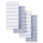 • SET OF FOUR TOWELS: Includes two (2) striped kitchen towels and two (2) solid towels. Each generously sized towel measures 16″ W x 26″ L.