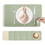 - 【Design a Doppia Faccia】Tovagliette americane lavabili realizzato in PVC di alta qualità, con doppia faccia verde chiaro e beige. Si adatta facilmente a diversi temi da tavola, donando freschezza ad ogni pasto.