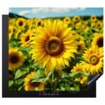 KitchenYeah© Protezione Piano Induzione 59×52 cm Cucina Copri Fornelli Proteggi di Cottura Antiscivolo Tappetino Girasole – Natura – Giallo – Fiori