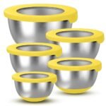 KITEISCAT Stainless Steel Mixing Bowls with Lids – Set of 5 Large Nesting Metal Bowls for Kitchen, Baking, Cooking, Food Prep & Storage, Non-Slip Base, Dishwasher Safe,Yellow