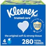 Kleenex Trusted Care Facial Tissues, 4 Cube Boxes, 70 Tissues per Box, 2-Ply (280 Total), Packaging May Vary is available on Amazon at best discounted online price. Original price of this product is $ 13.149999999999999. You can buy this product at discounted rate $ 7.56.