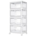 Kmiectse Clear Storage Bins with Lids,4 Tier Plastic Bins with Wheels,Stackable Storage Bin,Closet Organizers Box for Bedroom,Living Room,Toy,23 QT Folding Box with Magnetic door