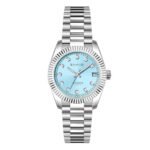 - Classic Sparkle Design:Featuring 11 exquisitely embedded diamond markers on its dial, which beautifully harmonizes with a stunning three-dimensional fluted bezel