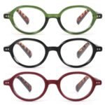 kollyseek 3pack Occhiali da lettura per le donne e gli uomini Retro Round Spring Zipper Occhiali di design2.0 Verde, rosso, nero