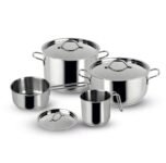 • EVERY: Lagostina Every set di pentole in acciaio inox 7 pezzi composto da: pentola a 2 maniglie 18 cm, casseruola fonda a 2 maniglie 22 cm, bollilatte 12 cm, casseruola fonda a manico lungo 14 cm, coperchi 14, 18 e 22 cm