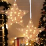 - DECORAZIONE ILLUMINANTE: La lampada sospesa ha una struttura di stella con cinque punte, decorata dai fili di ferro e dalle perline di luce, che rendono l’ornamento natalizio ancora più luminoso, più glamour e alla moda; può creare anche un’atmosfera naturale e sobria per la festa di vario genere.