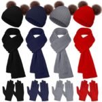 - 12 Pcs Kids Hat Scarf Gloves Set: includes 4 knit beanie hat with double pompoms, 4 pairs of children gloves, 4 kids scarves, keeping them cozy in cold weather; Vibrant colors bundle available for wear, replacement or gifting