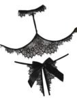 Lilosy Women’s Sexy Choker Halter Floral Lace Sheer Lingerie Set See Through Bra and Panty Bow 2 Piece Black Medium