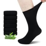 LOFIR Calzini Diabetici Uomo e Donna: Calze Sanitarie in Bambù Senza Cuciture Senza Elastico Morbido per Piedi Gonfi e Anziani 6 Paia Taglia 43-46 Nero