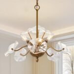 - Unique Floral & Vintage Design:This brass chandelier features delicate flower – shaped glass shades paired with a vintage brass finish, making it a standout flower pendant light. It perfectly blends mid – century modern charm with a touch of elegance, adding a distinctive artistic flair to any space and becoming a focal point of your room decor, ideal as a vintage chandelier or mid century chandelier.