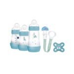 - Pratico set – Il set neonato è composto da diversi biberon MAM Easy Start anticolica e tettarelle, ciuccio silicone, porta ciuccio, il kit completo per ogni nascituro.