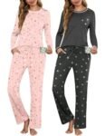 - 【Unique Design】2 pack pajamas for women including 2 matching pj sets, featuring long sleeve, multiple cute prints, casual round neck, elastic waistband, long pants lounge sets are suitable for all shapes. Each 2 pack long sleeve pj sets with side pockets, which is a nice sleepwear to hang out for lounging.