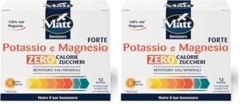 - Matt Potassio e Magnesio Forte è un integratore alimentare concentrato senza zuccheri né calorie a base di Potassio e Magnesio, utile per fornire una quota integrativa di tali nutrienti