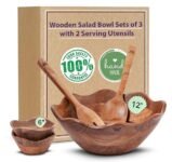 - WHAT’S IN THE BOX: A premium wooden salad bowl set featuring 1 large salad bowl (12″x12″x4.75″), 2 small bowls (6″x6″x2.5″) and 2 wooden salad servers (11″x3″x0.5″). Perfect for serving salads, pasta, snacks, or meal prep – ideal for everyday use or special gatherings.