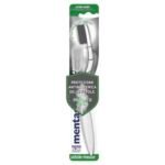 - SPAZZOLINO MENTADENT P ANTIBATTERICO CARBONE: con setole infuse con carbone e infuse con ioni d’argento che riducono la crescita dei batteri sulle setole aiutando a proteggere lo spazzolino