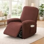 MeYuxg Set di 4 Copri Poltrona Relax Reclinabile, 1 Posto Elasticizzato con Tasche e Braccioli, Utte le Inclusive Strisce Jacquard, Lavabile (Caffè Profondo)