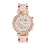 Michael Kors Parker orologio al quarzo cronografo con cinturino in acciaio color oro rosa cinturino con maglie centrali in acetato blush da donna MK5896