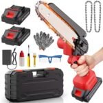 Mini Motosega Batteria Elettrica Sega – 800W Motoseghe per Potatura Taglio Legno e Giardini seghetto Elettrico con Motori Brushed, 2 Potatore Batterie 6″ Minisega Elettrosega Tagliarami Model 030