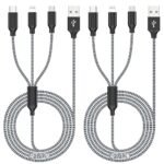 Multi Charging Cable (4ft 2Pack),3 in 1 Charging Cable Travel Essentials iPhone Charger Nylon Braided Cord with Type C Micro Lightning USB C for Apple Android Phone
