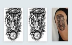 - Riceverete 2 fogli di tatuaggi tigre. Dimensioni del tatuaggio: circa 20 x 12 cm