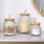 - ELEGANT TRANSPARENT DESIGN: These bathroom storage canisters boast a beautiful ribbed glass design that not only adds a touch of elegance to any room, but also allows you to see the contents easily.